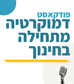 דווקא עכשיו, כשהשיח הופך למקוטב ואלים, כשדעות מנוגדות יוצרות ניכור, פחד ושנאה, אנחנו חושבים שזהו הזמן להבין היטב מהי דמוקרטיה, לקדם שיח מכבד ולהעניק כלים לשינוי חברתי לילדים ולבני נוער. לכן חברנו – אנשי חינוך מובילים, בשיתוף "אדם – המדרשה לדמוקרטיה ולשלום" להפקת פודקאסט שמטרתו אחת – חינוך לדמוקרטיה ולשיח מכבד והובלה לשותפות אזרחית. למידע נוסף…
