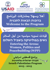 עוסקת בהעצמת והכשרת נשים למנהיגות פוליטית וחברתית. התוכנית מכוונת ליצירת קבוצת נשים צעירות ישראליות ופלסטיניות המחוייבות לשלום, אשר יפעלו לשינוי משמעותי ובר-קיימא במעמדן של נשים בפוליטיקה בכלל ובמשא ומתן לשלום בפרט, ויהוו תשתית לדור הבא של מנהיגות פוליטיות משפיעות באזור. למידע נוסף…
